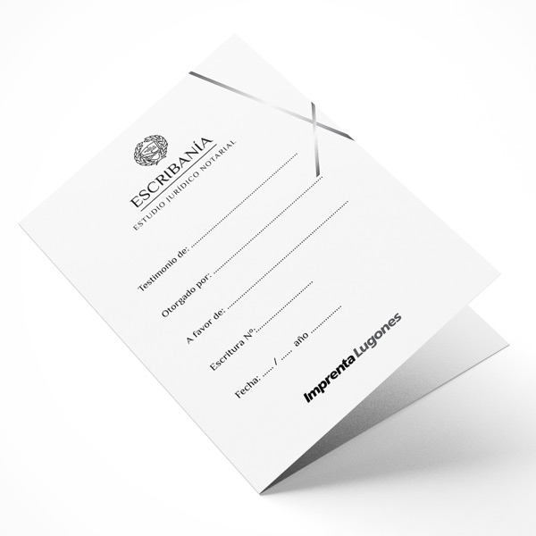 Carátulas / Carpetas económicas para escribanías impresas en tinta negra, sin solapa.